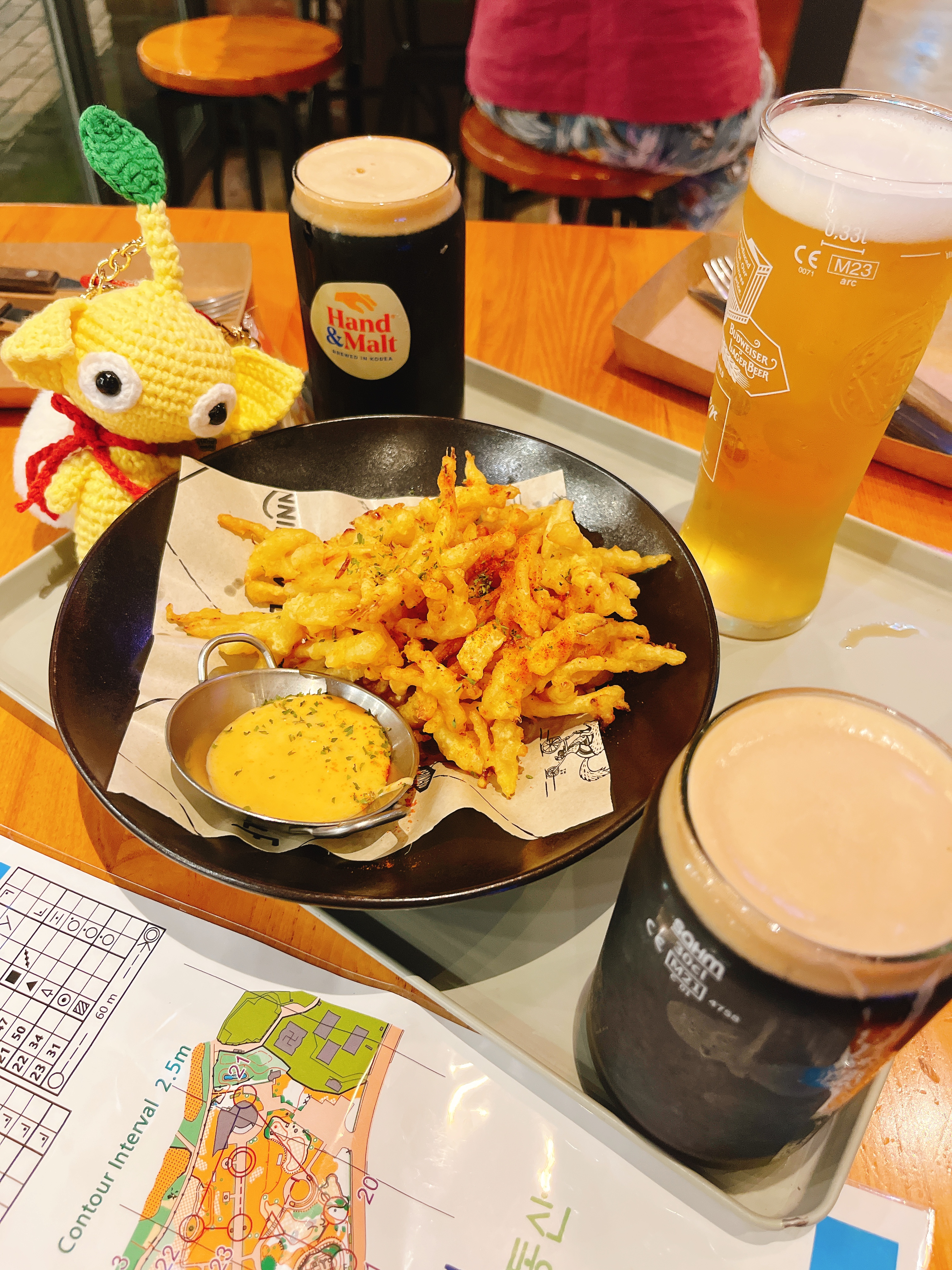 공항에 일찍 도착하는 C언니를 픽업하러 공항에 갔다. 대회 장소까지는 얼마 걸리지 않기 때문에, 전날 술을 마시고 숙소로 돌아오며 탄 택시의 기사님이 추천해 준 각재기국을 아침으로 함께 먹기로 했다. 배추가 잔뜩 들어간 맑은 전갱이국인데, 해장국으로 딱이었다. 출발 시간은 11시 반이었다. 아침을 먹을 때 비가 꽤 왔는데, 출발할 때가 되니 바닥에 비 흔적이 남지 않을 만큼 해가 쨍쨍했다. 그동안 오래 달리지 못했지만, 경기 중에는 한껏 최선을 다했다. 지도를 제대로 읽지 않고, 기호를 잘 숙지하지 못한 탓에 2위를 했다. 하지만 더 할 수 없을 만큼 열심히 달려 후회 따윈 없었다. 도착 후 30분 넘게 물을 한껏 마시고 그늘에서 쉬면서 더위를 식혔다. 너무 맛있어서 고기 대신 콩국수를 파는 집에서 점심을 먹고, 여름에도 차가운 물이 있어 아이싱 하기 좋다는 샛도리물을 들렀다. 과연 1분도 버티기 힘들 만큼 차가운 물이었는데, 물에 몸을 푹 담그고 노는 사람들이 있어 신기했다. 우리는 이제는 문을 닫은 해수욕장의 따뜻한 물속에 들어가 넘실거리는 파도에 몸을 맡겼다. 간혹 비가 쏟아졌지만 이미 다 젖은 터라 상관이 없었다. 바다에서 나와 서핑샵의 샤워실에서 씻고 나오니 매우 개운했다. J가 예약을 도와준 숙소에 도착해 50% 할인을 받아 맥주를 마셨다. 술기운으로 어두운 광치기해변을 다녀왔다.